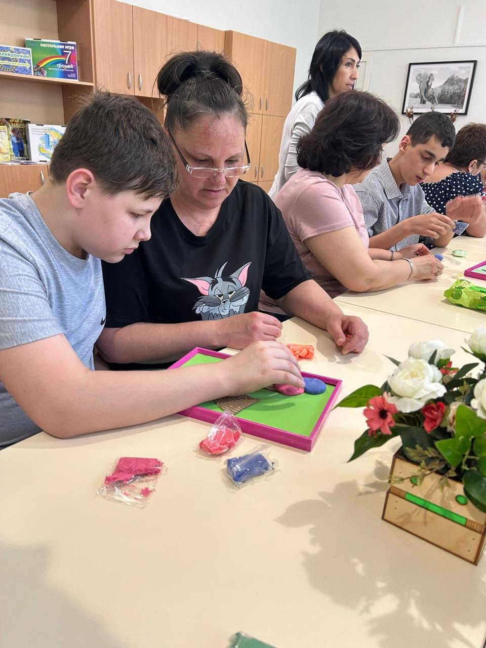 Педагоги дополнительного образования Мясниковского центра помощи детям провели мастер-класс для детей и родителей клуба "Папа особенного ребенка". С большой радостью все шагнули в мир творчества. И это неудивительно, ведь творчество — это не только способ самовыражения, но и удивительный инструмент для расслабления. И Дети, и Родители работали увлечённо, создавая шедевры кондитерского искусства из суперлёгкого пластилина. Панно "Сладкие радости Лета" получились яркими, оригинальными и очень" вкусными". В мастерской было много улыбок, смеха, интереса и хорошего настроения. Работая над панно, все переключились на творчество, тревожные мысли отступили и воцарили лёгкость и спокойствие. Хочется пожелать всем нашим гостям, чтобы такие маленькие картинки творческой радости и красоты, украшали каждый их день.
