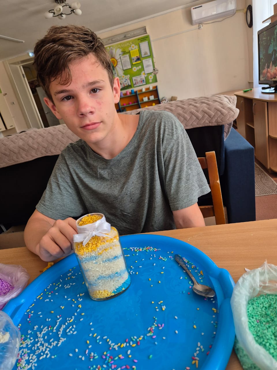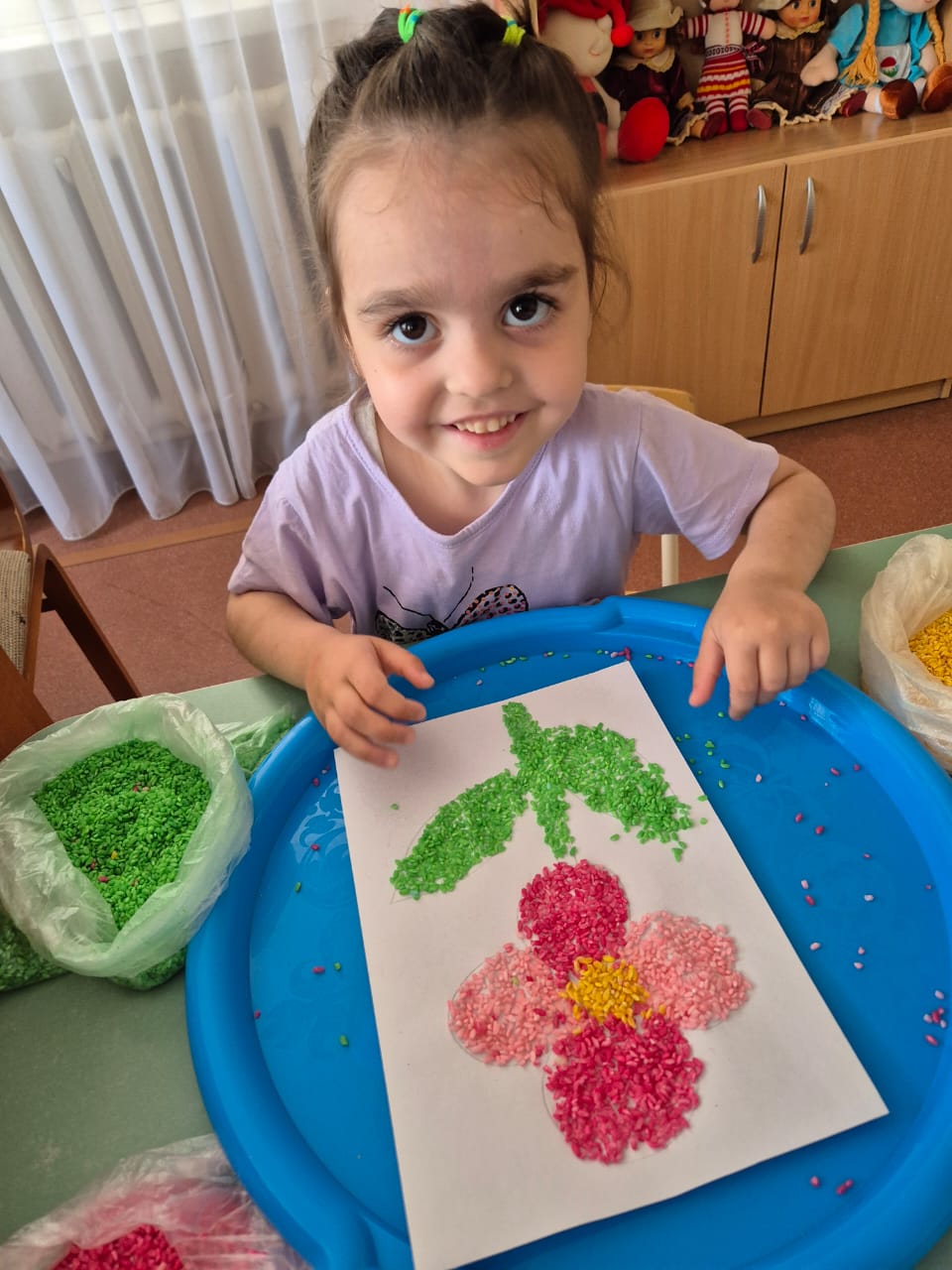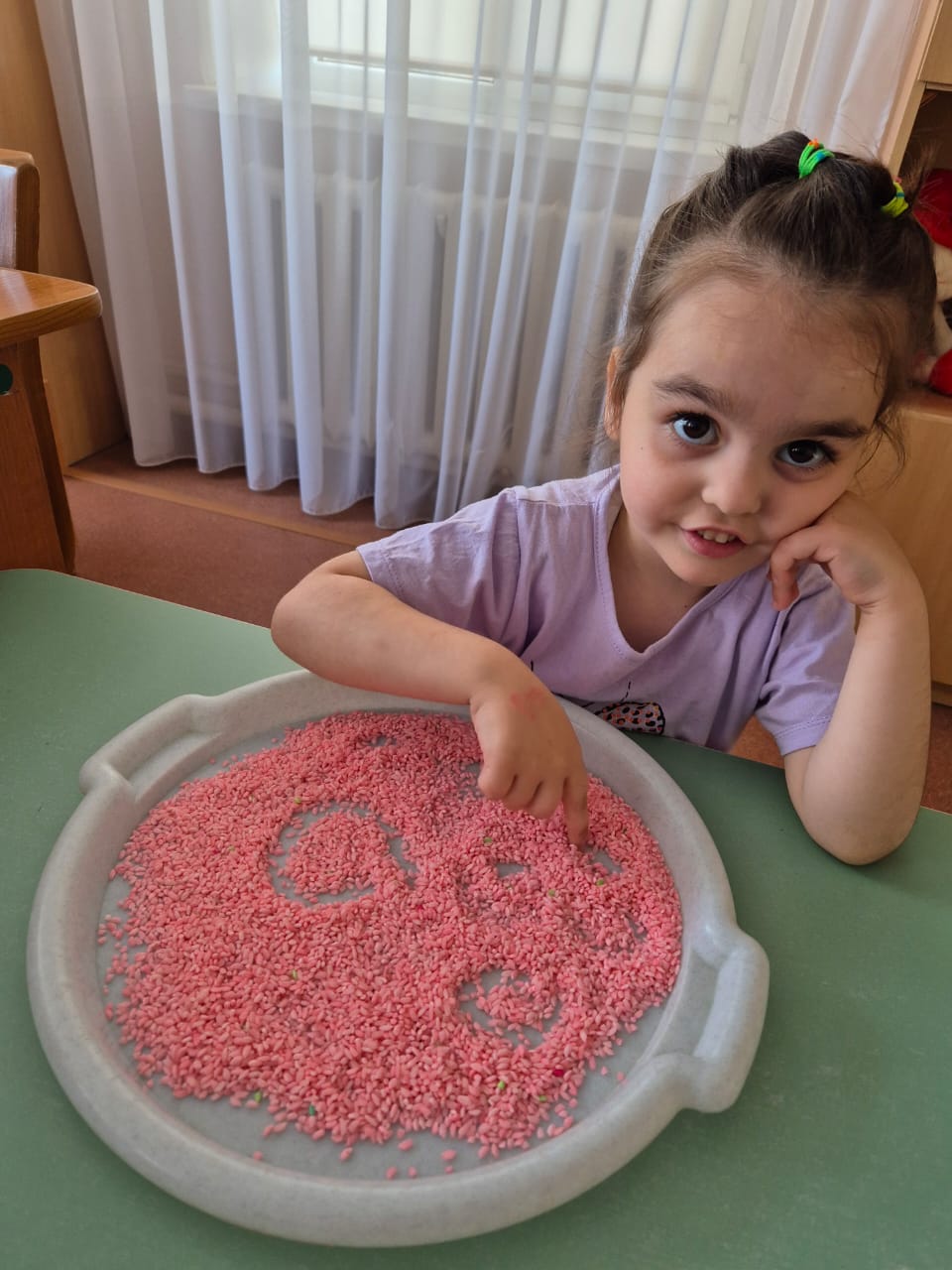 Воспитатель Екатерина Викторовна провела с воспитанниками группы интересный мастер класс из цветного риса.