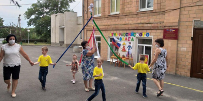 Завершением праздника стала яркая, красочная, веселая игра – «Карусель» под песню «У моей России длинные косички», которая объединила всех детей и взрослых.