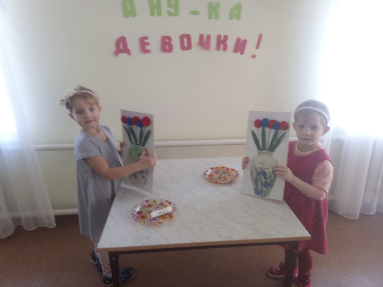 участвовали в развлечении "А ну - ка, девочки", изготовили небольшие праздничные открытки сотрудницам учреждения.