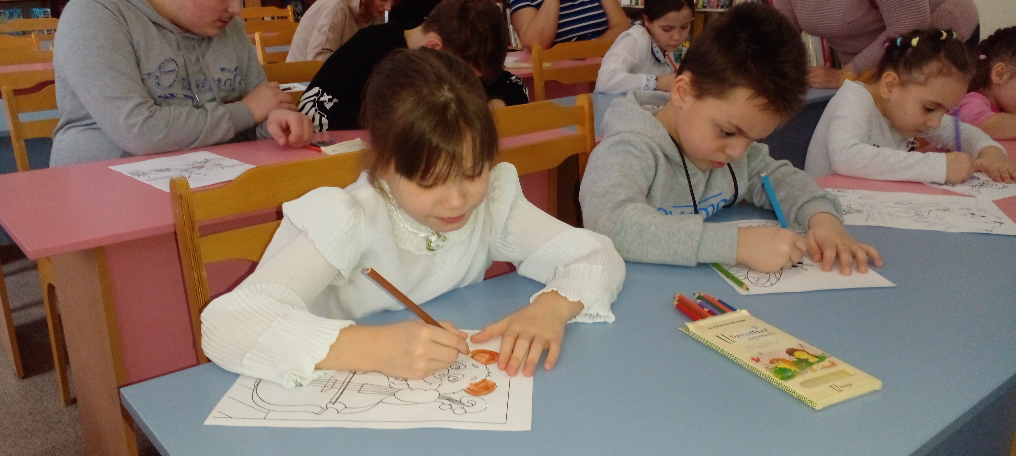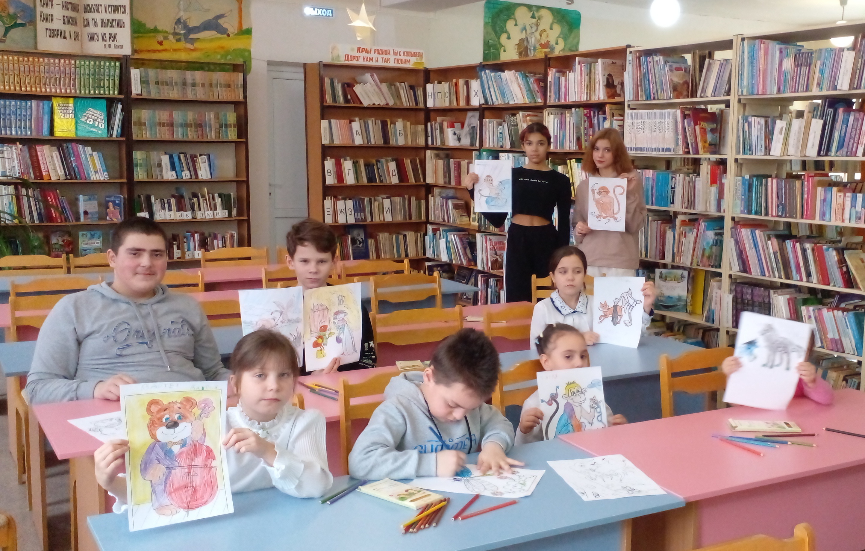 Затем ребята с интересом отгадывали загадки из викторины «Басни дедушки Крылова». С помощью игры «Найди героя» угадывали героев из басен Крылова и, разукрашивая, оживили героев. А выполненные рисунки Тумасяна Дениса и Бондаренко Марии по мотивам басен «Свинья под Дубом» и «Ворона и лиса», нашли отражение на книжной выставке «Баснописец на все времена».