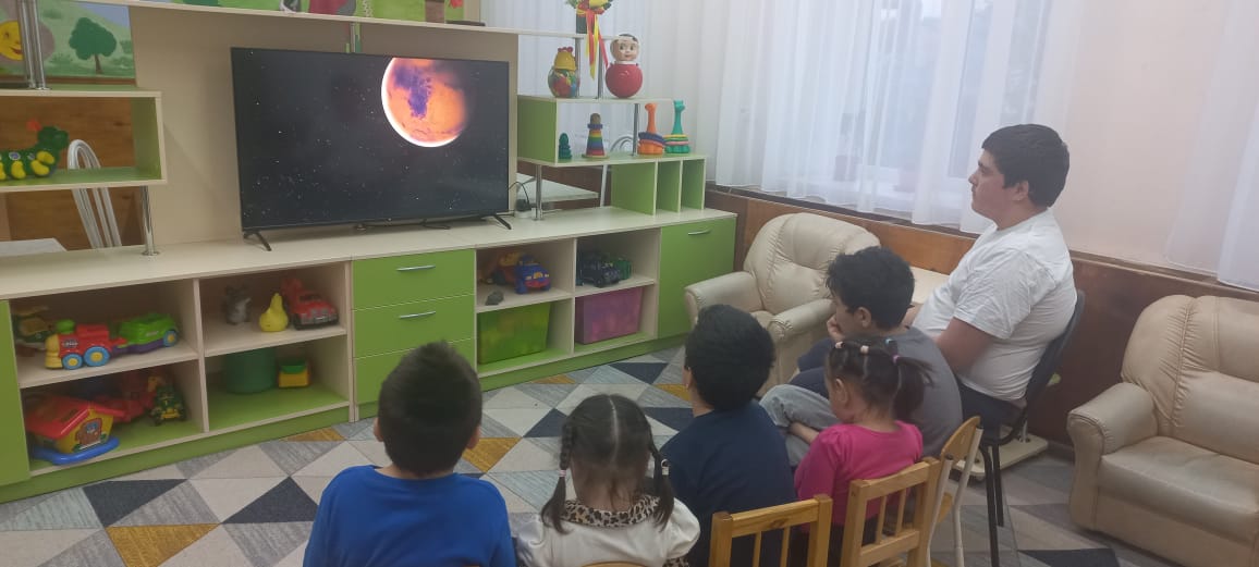 В рамках празднования Дня космонавтики и 90-летия первого космонавта Юрия Гагарина в Мясниковском центре помощи детям воспитатель Шатохина Е.В. продемонстрировала ребятам презентацию о космосе и первом космонавте.