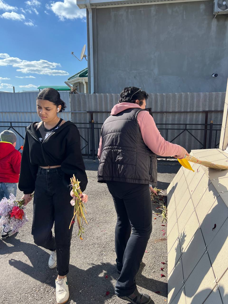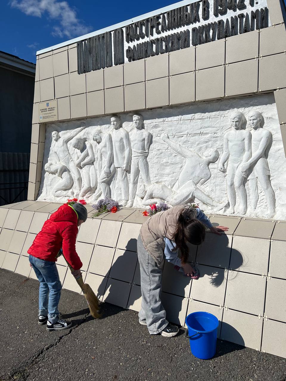 В преддверии Дня Победы воспитанники Мясниковского центра помощи детям провели уборку прилегающей территории Памятника землякам - жертвам фашизма, который был воздвигнут в 1975 году в память о безвинно расстрелянных жителях села Чалтырь в августе 1942 года.