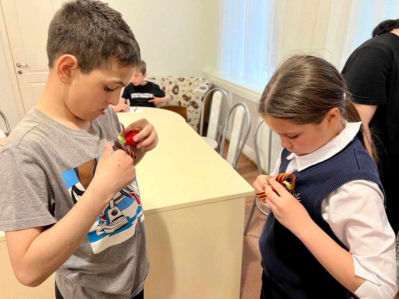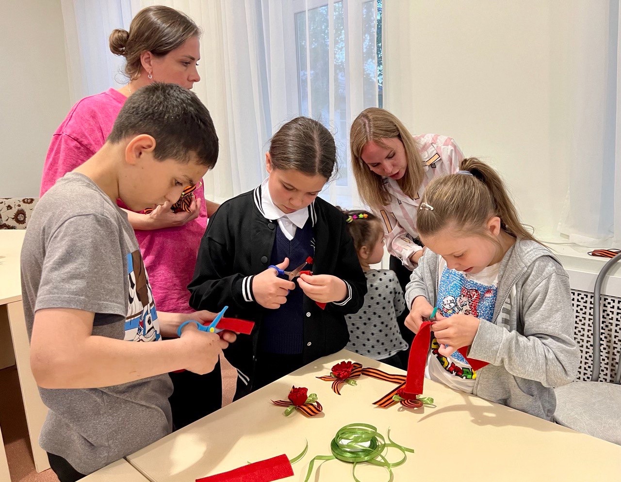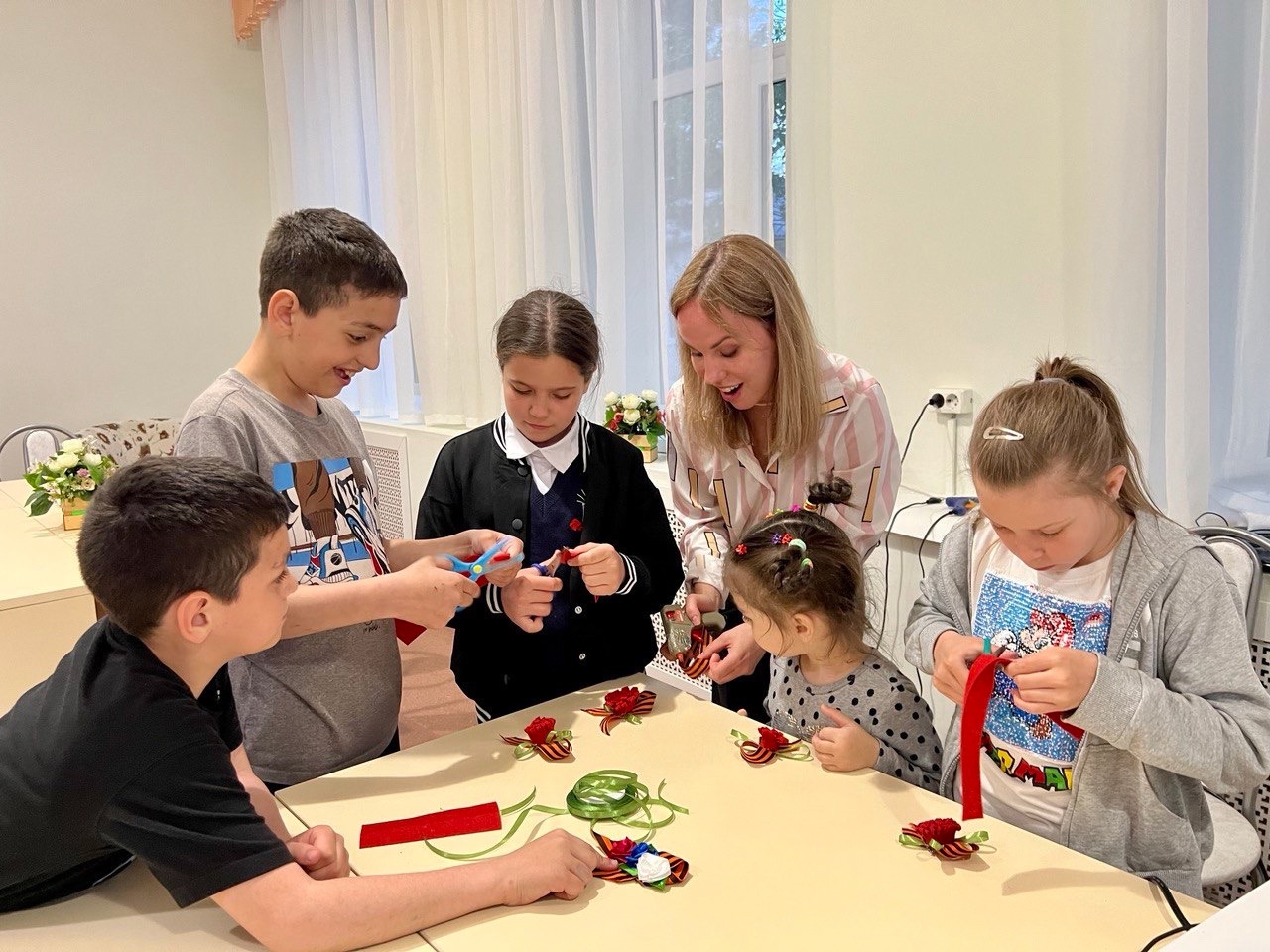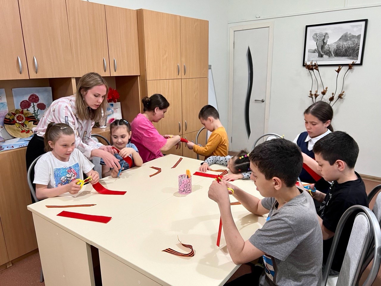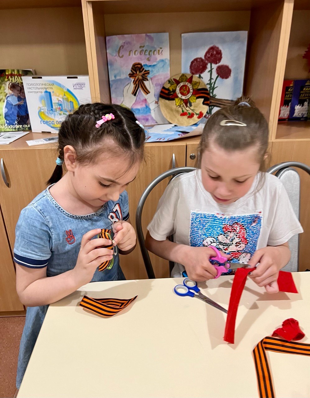 День Победы - самый знаменательный праздник в нашей стране! Накануне, в Мясниковском центре помощи детям был проведен патриотический час «День победы в наших сердцах!» В ходе мероприятия ребята просмотрели видеопрезентацию, поговорили о событиях Великой Отечественной войны, о том, какой ценой была завоевана Победа, о героях, совершивших подвиги, защищая свою Родину. Дети с гордостью прочли стихотворения о Великой Отечественной войне и Победе! В завершении мероприятия ребята под руководством педагога дополнительного образования Сайченко В.И. своими руками изготовили георгиевские ленточки и с гордостью прикрепили их ближе к сердцу!