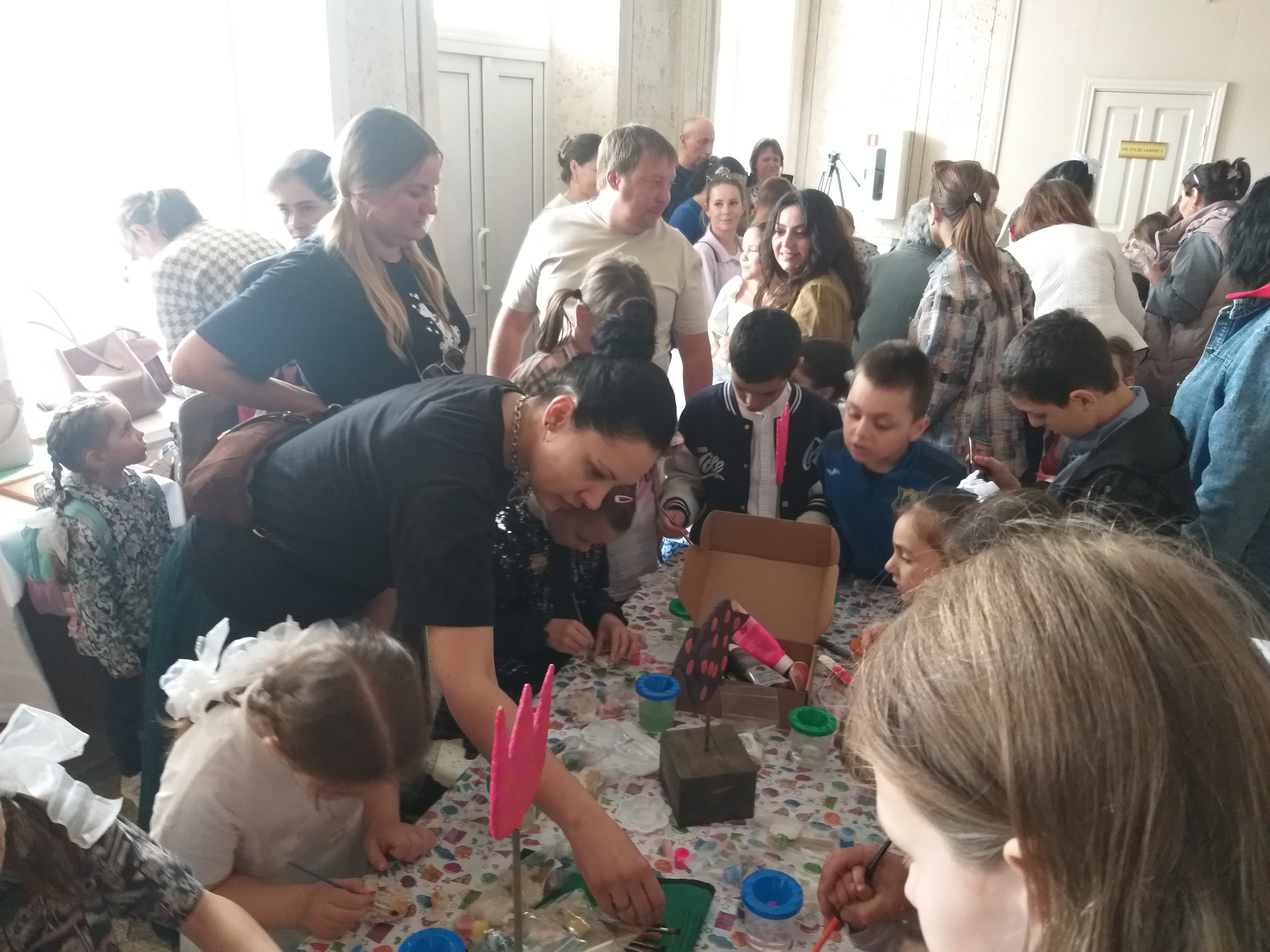 посвящен творчеству. Ребята вместе с родителями расписывали броши из